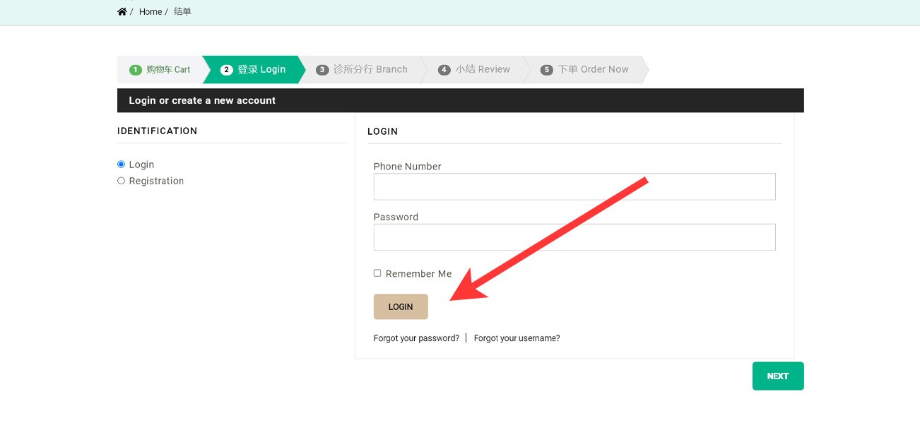 If you are a returning customer, please log in using your email and password. Otherwise, please register by completing the registration form. Then click the "Next" button to continue.
