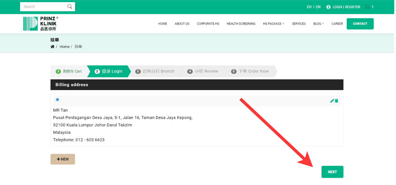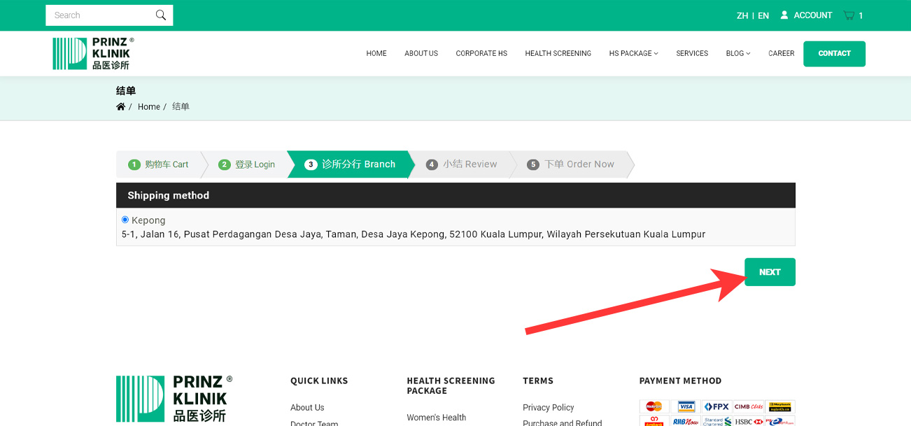 Q4. After successfully purchasing a health screening package on the website, how can I redeem it?