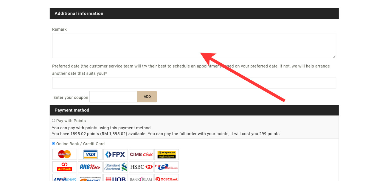 Select your preferred appointment date. You can leave a note mentioning any clarifications.