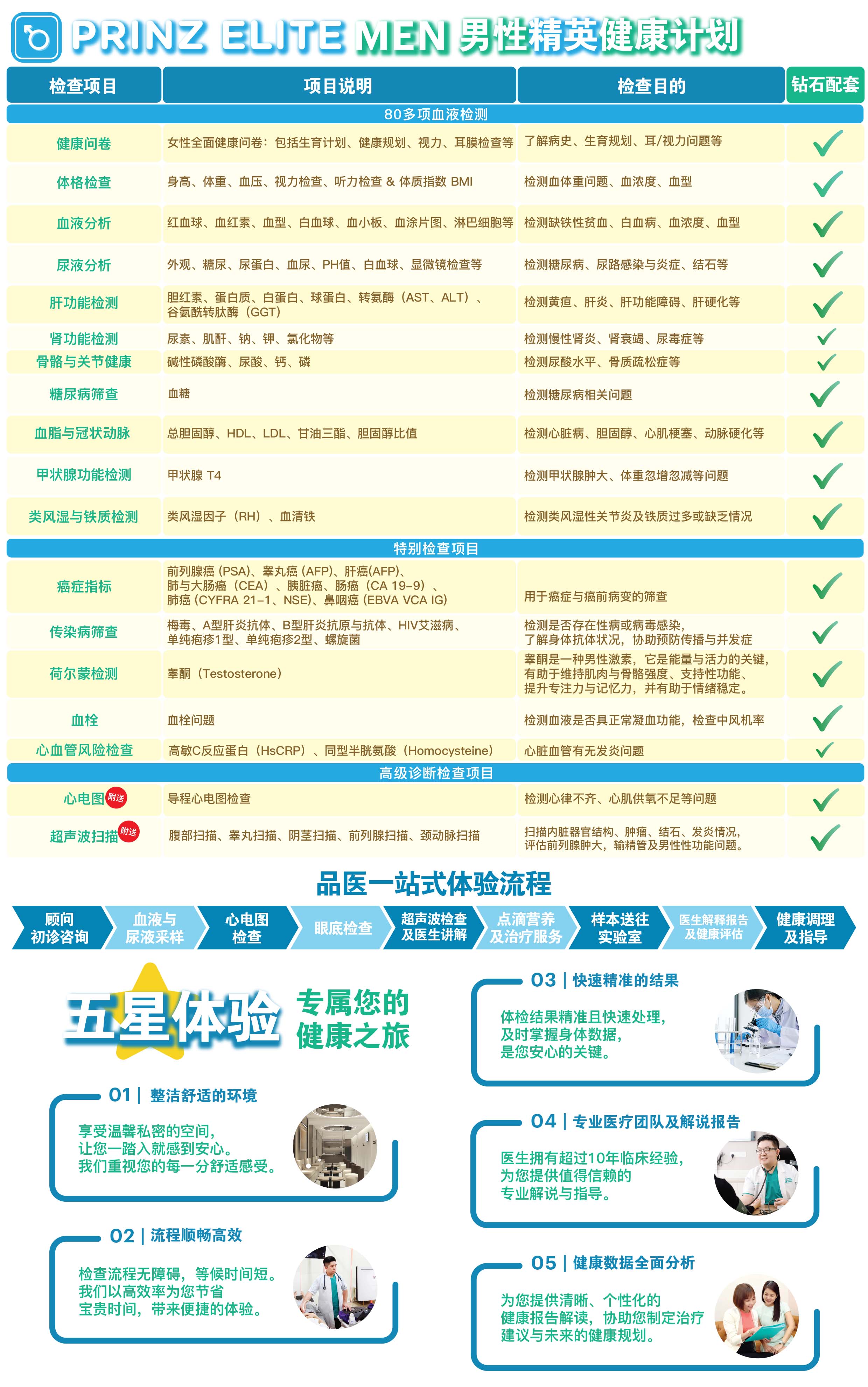 本筛查协助你全面了解身体状况,重点检测项目包括: