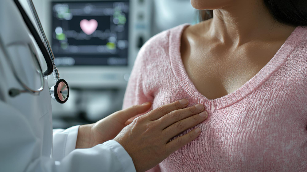 临床检查会评估乳房外观、对称性与触感变化, 帮助发现局部增厚、不对称或异常触感。